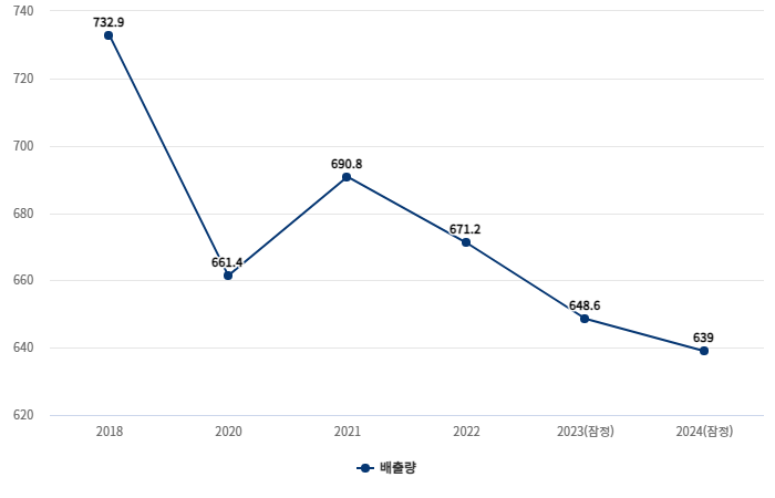 20일 환경부 소속 온실가스종합정보센터에 따르면 지난해 국가온실가스 잠정배출량은 총 6억3897만톤으로 나타났다. 이는 기후변화에 관한 정부간 협의체(IPCC)의 1996년 지침 기준으로 산정한 수치로, 해당 기준이 현재 2030 NDC 달성 여부를 평가하는 데 쓰인다.