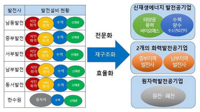 기존 남동·남부·동서·서부·중부 등 5개 발전사는 지역별 분산 배치돼 각기 고유 기능을 유지해왔다. 그러나 기후에너지환경부는 탄소중립·재생에너지 보급 확대를 핵심 과제로 삼을 것이 유력해 석탄 중심 설비를 다수 보유한 기존 발전사들에 대한 구조조정 압박이 현실화될 가능성이 높아지고 있다.