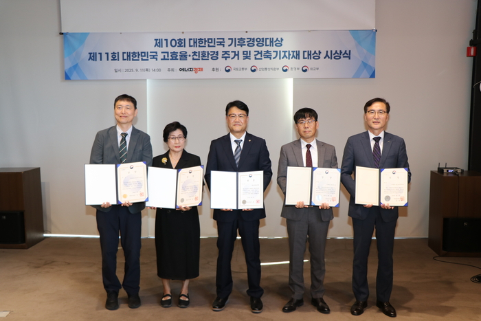 11일 에너지경제신문 주최로 열린 제10회 대한민국 기후경영대상 시상식에서 △외교부장관상 한국산업은행 △환경부장관상 (주)이브자리와 (재)인천테크노파크 △산업통상자원부장관상 포스코인터네셔날과 (주)파인네스트가 선정돼 수상했다.