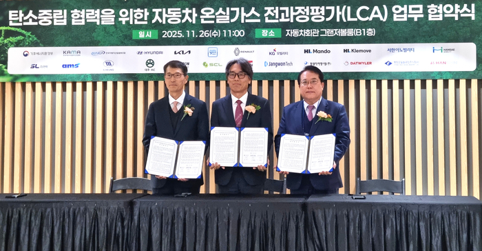 지난 26일 서울 서초구 자동차회관에서 기후에너지환경부와 자동차 업계가 온실가스 전과정평가(LCA) 역량 강화를 위해 협력한다는 협약식 행사가 열렸다. LCA(life-cycle assessment)는 자동차 제작단계(원료 채취 및 부품제조, 완성차 생산포함)부터 운행, 폐기에 이르기까지 전 생애주기에서 발생하는 온실가스 배출량을 산출하여 평가·관리하는 체계를 말한다.