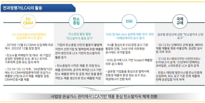 이처럼 기업의 온실가스 배출량을 정확히 산정하는 것이 중요한 과제가 된 가운데 특히 LCA가 온실가스 배출량 산정의 핵심 도구로 주목 받고 있다.