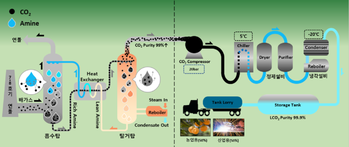가장 핵심은 배기가스 속 이산화탄소를 선택적으로 흡수하는 '아민계열 흡수제'다.