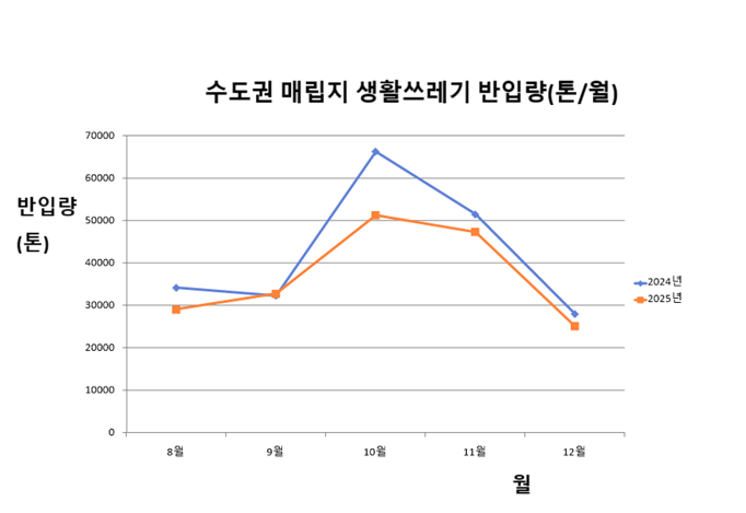 실제로 수도권매립지에 1~11월 반입된 생활쓰레기는 48만9134톤으로 지난해 같은 기간 52만1911톤에 비해 6.2% 줄었을 뿐이다.