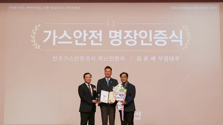 한국가스안전공사(사장 박경국)는 지난 2일 충북 음성 본사에서 제2호 가스안전 명장으로 선발된 재난안전처 김훈배 부장대우에 대한 인증식을 개최했다고 밝혔다.