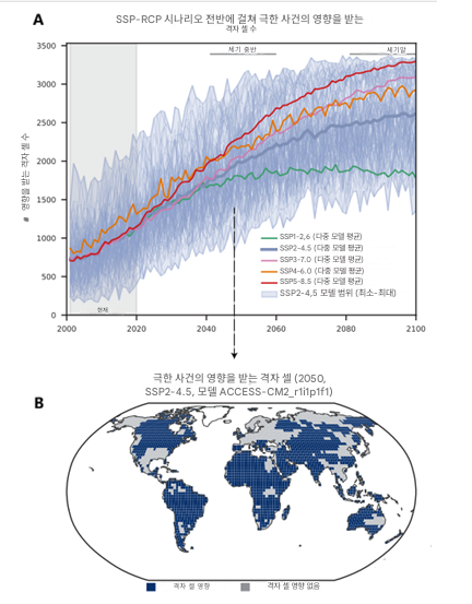 연구팀이 주목한 핵심 개념은 '공간적 복합 극한 현상(spatially compounding climate extremes)'이다. 이는 폭염·폭우·가뭄·수자원부족과 같은 극단적 기상 현상이 서로 다른 지역에서 같은 해, 혹은 같은 시기에 동시에 발생하는 현상을 뜻한다.