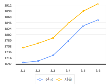 한국석유공사 유가정보시스템 오피넷에 따르면 전국평균 주유소 휘발유 판매가격은 리터당 28일 1693원에서 6일 오전 10시 기준 1856원으로 9.6% 올랐고, 같은 기간 경유 판매가격은 1598원에서 1864원으로 16.6% 올랐다. 휘발유 가격이 1800원을 넘어선 건 지난 2022년 8월 12일 이후 약 3년 7개월 만이다.