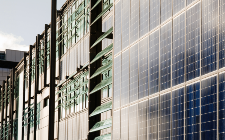 건물 외벽에 설치된 태양광 패널은 태양의 직사광선을 차단해 실내로 열이 들어오는 것을 줄이고, 동시에 추가적인 열저항층 역할로 냉방 부하를 감소시키는 것이다.